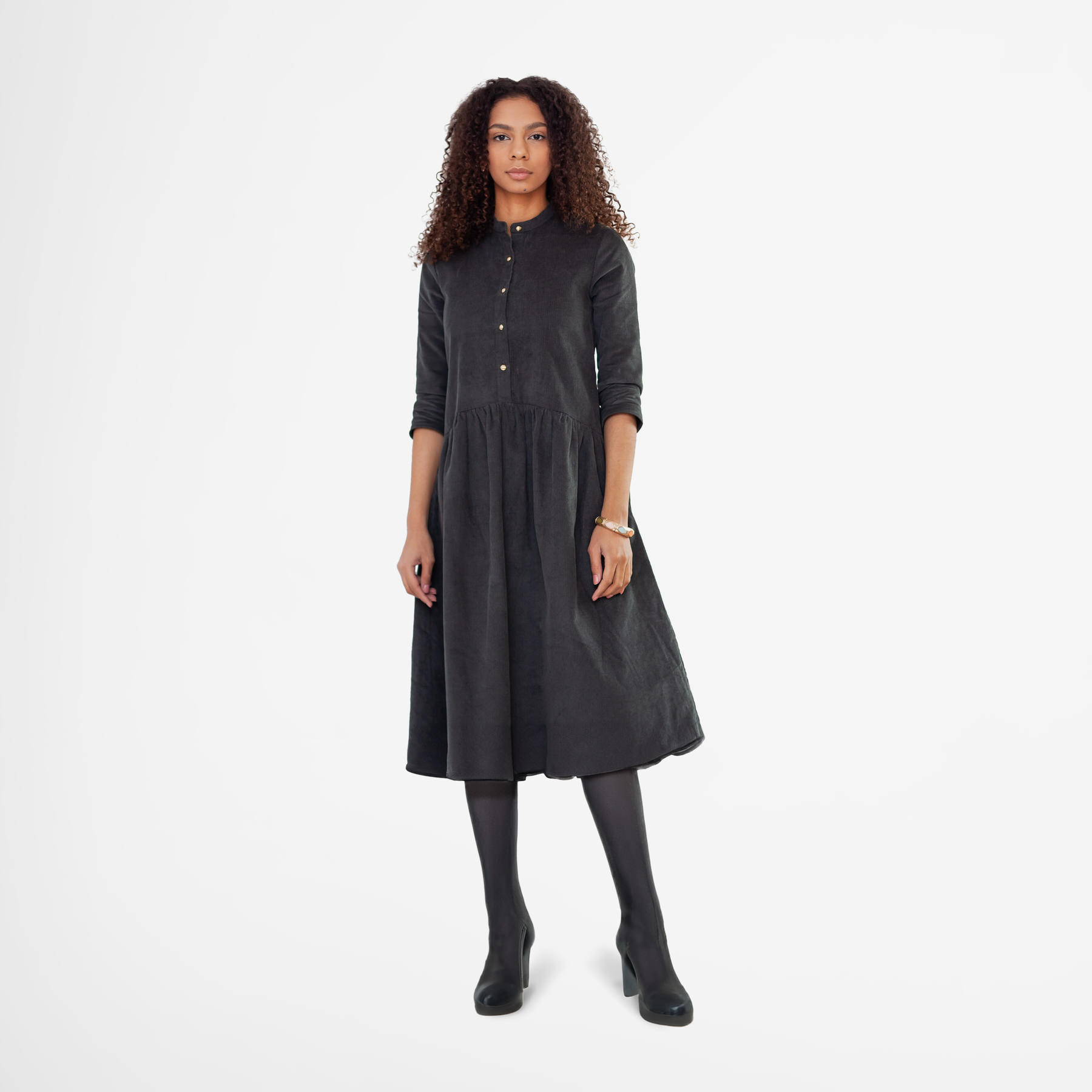 Long-Sleeve Corduroy Dress